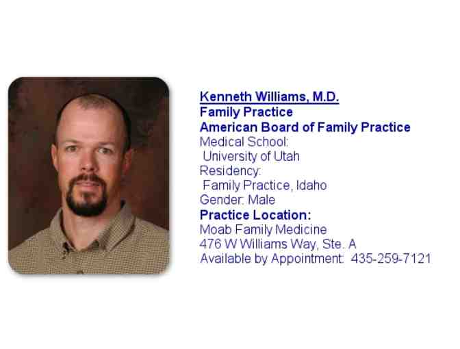 Dr. Ken Williams of Moab Family Medicine and Moab Regional Hospital are partnering to offer one colonoscopy to the winning bidder!