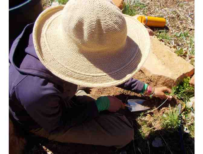 Woven cotton sun hat with flexible brim. One size fits all. This hat has lots of stretch and flex! 100% cotton. 14.5" D.