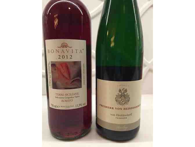 6 bottles of Mosel Riesling Feinherb Weingut Freiherr Von Heddesdorff 2011 and 6 bottles of Bonavita Terre Siciliane Rosato 2012. Mosel Riesling Feinherb Weingut Freiherr Von Heddesdorff 2011 Andreas von Canal is the grandson of the last Freiherr von Heddesdorff. His family has grown Riesling in Winningen since 1454, on steep, terraced vineyards near the confluence of the Mosel and the Rhine, just upriver from Koblenz. Bonavita Terre Siciliane Rosato 2012 Bonavita is a small family-run winery in Sicily that sits on the steep hills overlooking the strait of Messina and the coast of Calabria in the distance. The vineyards, surrounded by chestnut and oak trees, have belonged to the Scarfone family for almost a century, but it is only recently that the 28 years old Giovanni has decided to dedicate himself to the making of this historical wine of Sicily.