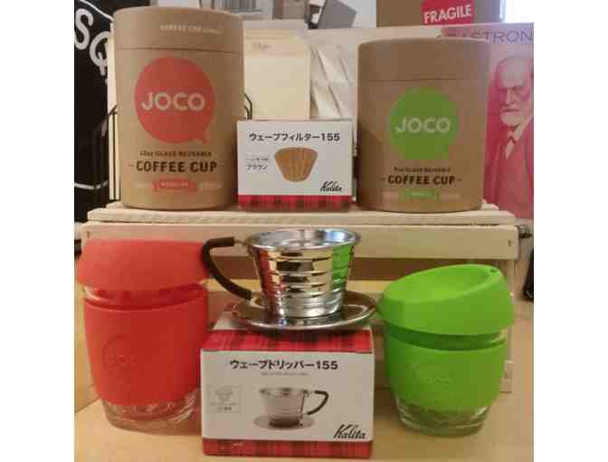JOCO 12oz glass coffee cup, JOCO 8oz glass coffee cup, Kalita stainless pour over, Kalita filters