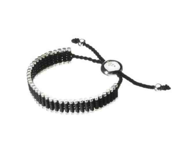 Hand-woven with black thread, these sterling silver bracelets are a modern, grown-up take on the friendship bands we made as children.