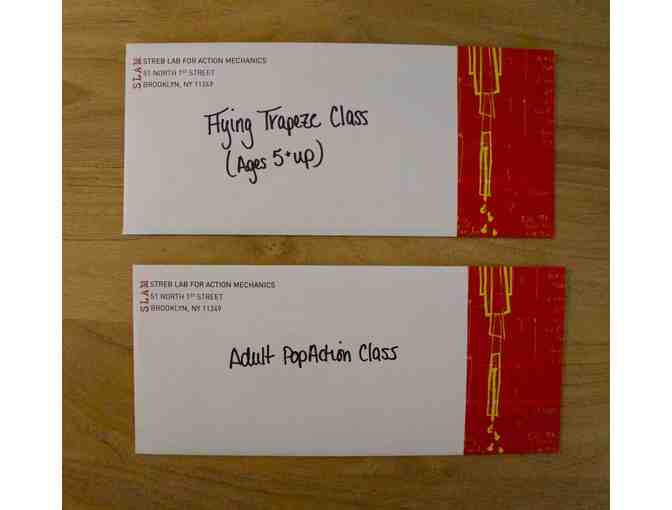 1 Gift Certificate for Flying Trapeze Class (Ages 5 & up) and 1 Gift Certificate for Adult PopAction Class