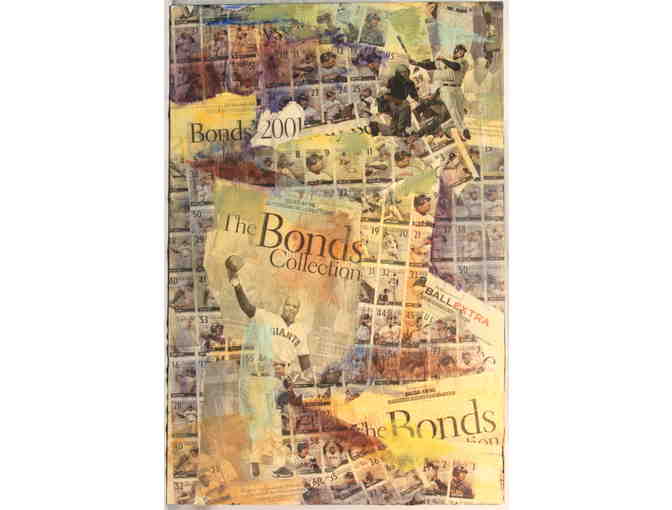 This unique collage of newspaper clippings celebrates the storied career of San Francisco Giants Barry Bonds. Collage measures 3 feet high by 2 feet wide.
