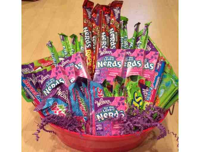 Enjoy this amazing basket of Wonka Candy including sweet tarts, nerds and more!