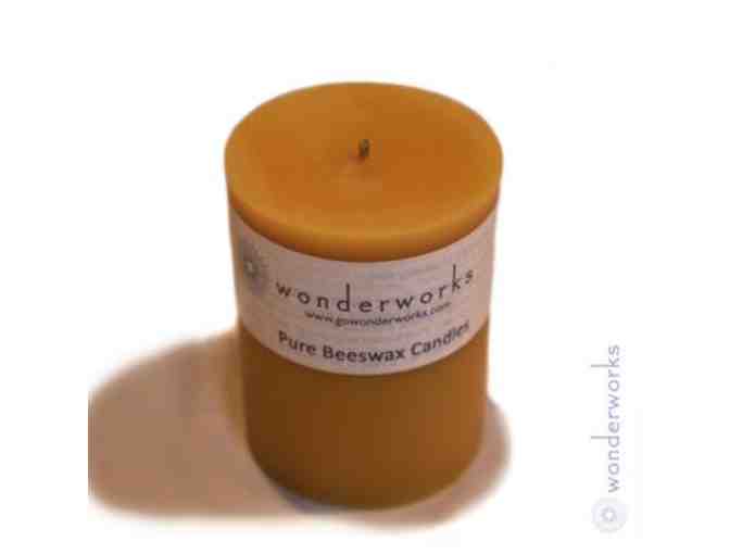 Turn up the brightness with three beeswax pillar candles (3"x4") from Wonderworks to place individually, grouped, or to present as gifts.