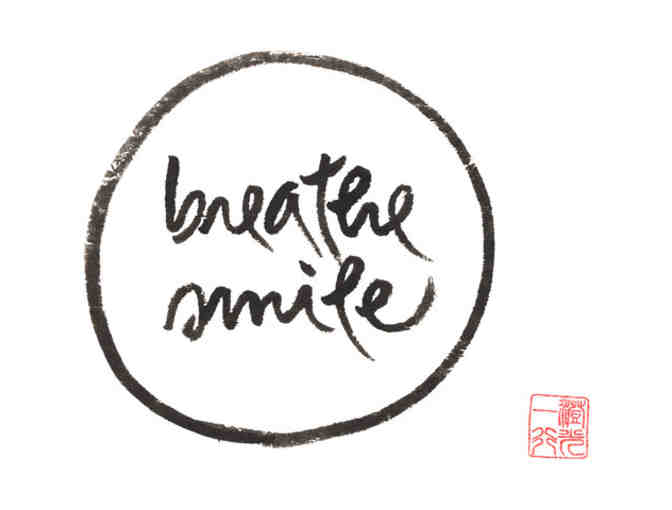 Lion's Roar deputy editor Andrea Miller met with Thich Nhat Hanh at his "Open Mind Open Heart" retreat in Vancouver in August of 2012. That interview appears in the January 2012 issue of the magazine. "Breathe smile" is one of the calligraphies Thay created and gave to the Lion's Roar Foundation on the occasion of that visit.