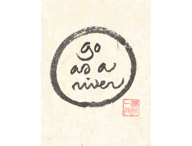 Lion's Roar deputy editor Andrea Miller met with Thich Nhat Hanh at his "Open Mind Open Heart" retreat in Vancouver in August of 2011. That interview appears in the January 2012 issue of the magazine. "Go as a river" is one of the calligraphies Thay created and gave to the Lion's Roar Foundation on the occasion of that visit.