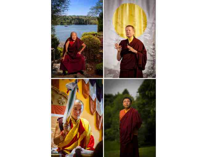The successful bidder for this item will receive a set of four professional photographs of teachers Dzongsar Khyentse Rinpoche, Pema Chodron, Sakyong Mipham Rinpoche, and Tsoknyi Rinpoche from Marvin Moore Photo.