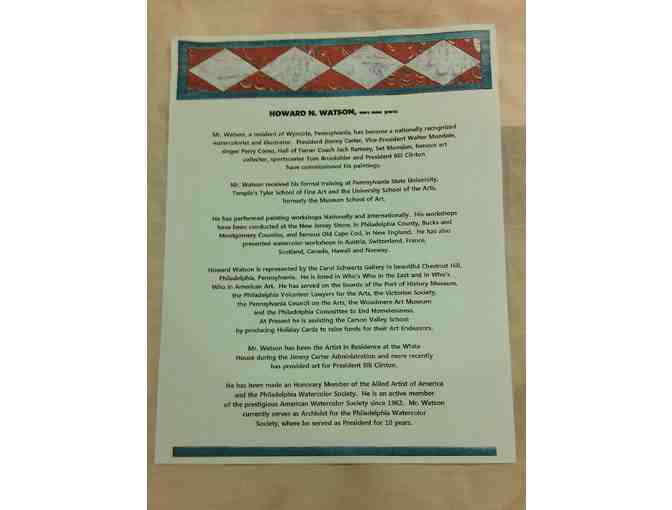 Howard N. Watson, a nationally recognized watercolorist and illustrator, is an Honorary Member of Allied Artists of America (AAA), the Philadelphia Watercolor Society (PWCS), and the American Watercolor Society (AWS).