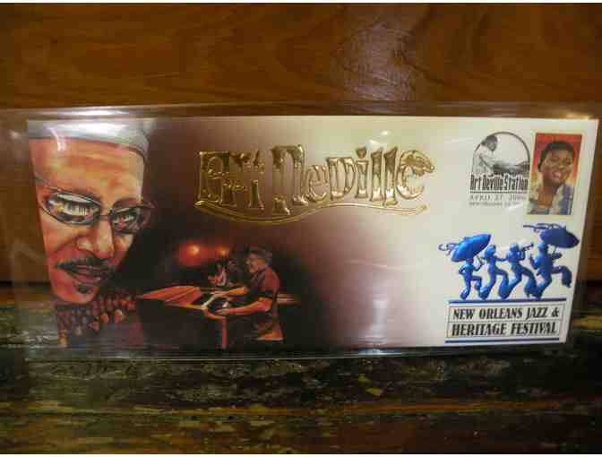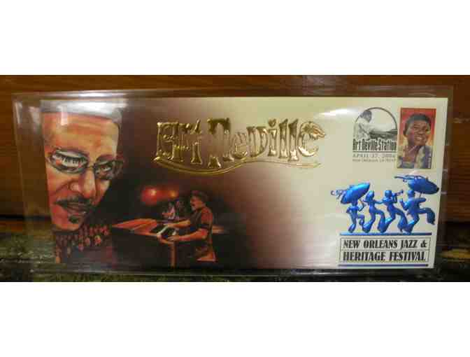 The winning bidder on this item will receive one 2006 Art Neville New Orleans Jazz & Heritage Festival Official Commemorative Postal Cachet. The cache features a color collage, blue and gold foil print, and Art Neville at the piano postmark. Total production of this cache was 3,000.