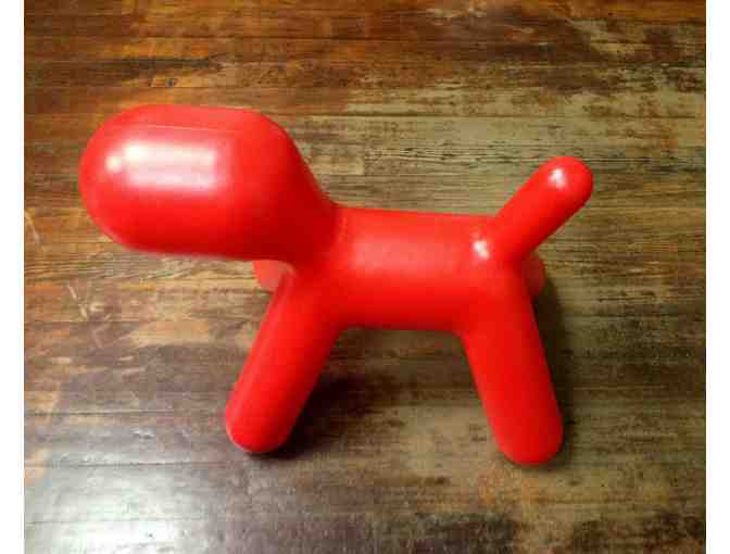 A unique Red Puppy Bench from Hurwitz Mintz that would be ideal for any play room, TV room, or backyard!
