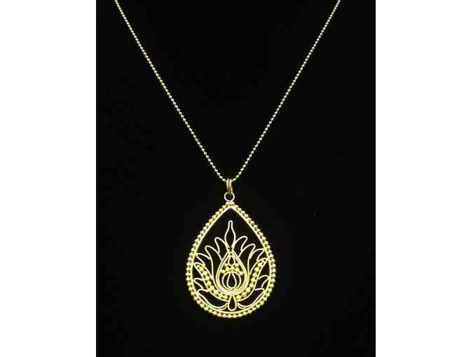 This teardrop lotus necklace from Sabai Jewelry Gallery is 24k gold vermeille over sterling silver and would certainly add elegance and appeal to any outfit.