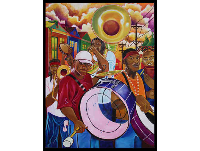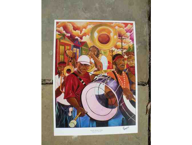 "Buck Jump Time" is a moving and realistic print by Varion Laurent depicting a quintessential New Orleans brass band playing in the streets of the Big Easy. This piece is sure to add a unique element to any room.