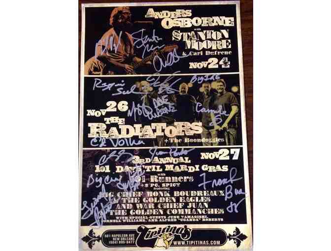 Signed Tipitina's poster of November Playbill, including Anders Osborne, The Radiators, Big Cheif Monk Boudreaux, and more. Poster in Very Good to Excellent condition, signed by band members.