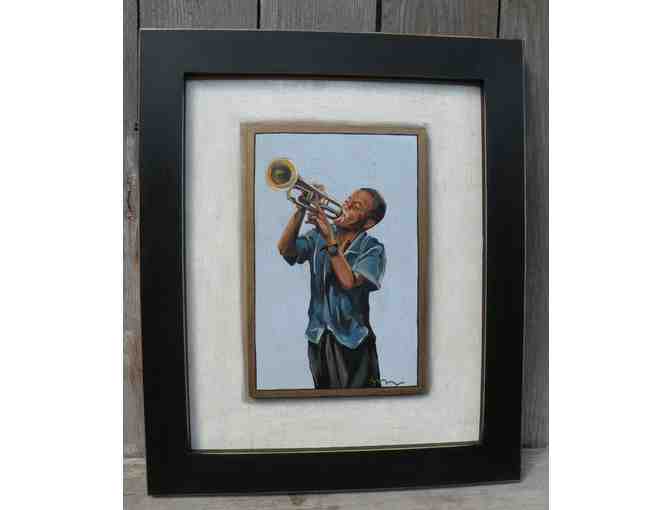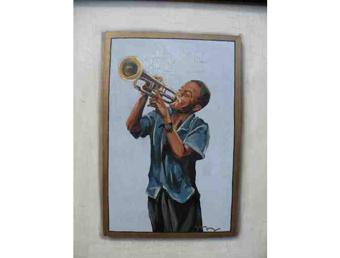 This unique and original painting by Kelly Magee would add a touch of style and funk to any room! Depicting a little boy playing the trumpet, Magee really captures New Orleans living!