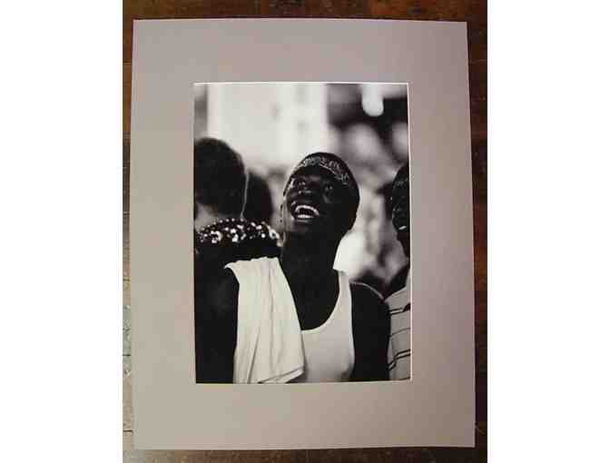 "Carnival Smile" is a print of a man smiling in the streets of New Orleans by Elroy Eckhardt as part of his Carnival, 2006 series. Measured at 13" x 19" this photograph would be a feel good image for any room!