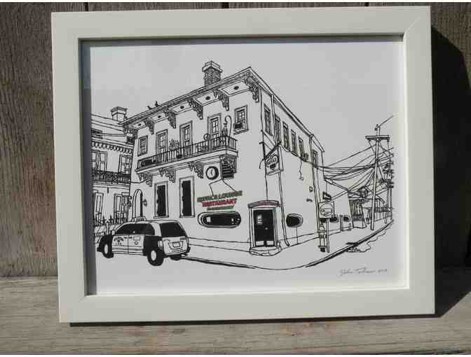 "Buffa's Lounge" is a signed print of a drawing of one of New Orleans' favorite restaurants by John Tebeau. Famed and measures at 8" x 10". Signed by the artist.