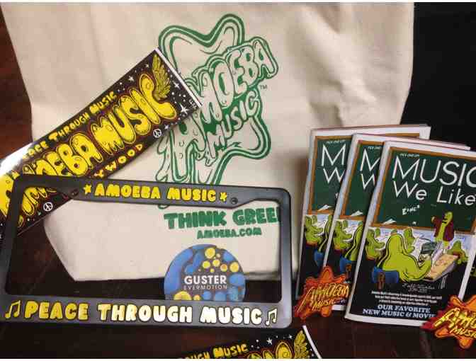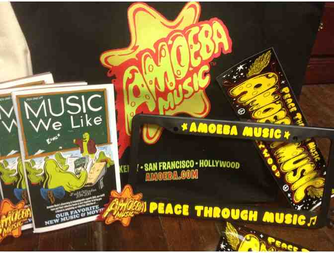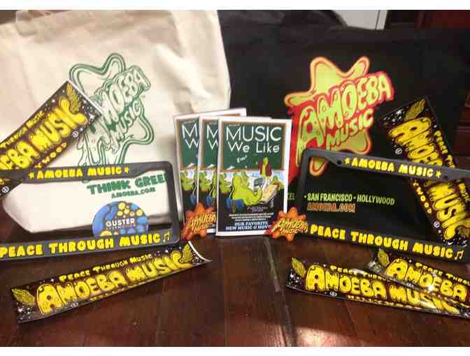 This package of SIGNED memorabilia, unique banners and posters, swag and music galore all from Amoeba Music will make any music lover ecstatic! Along with Amoeba Music tote bags (2), bumber stickers (4), patches (2), license plate frames (2), & brochures (3) the winner of this package will be getting so much more!