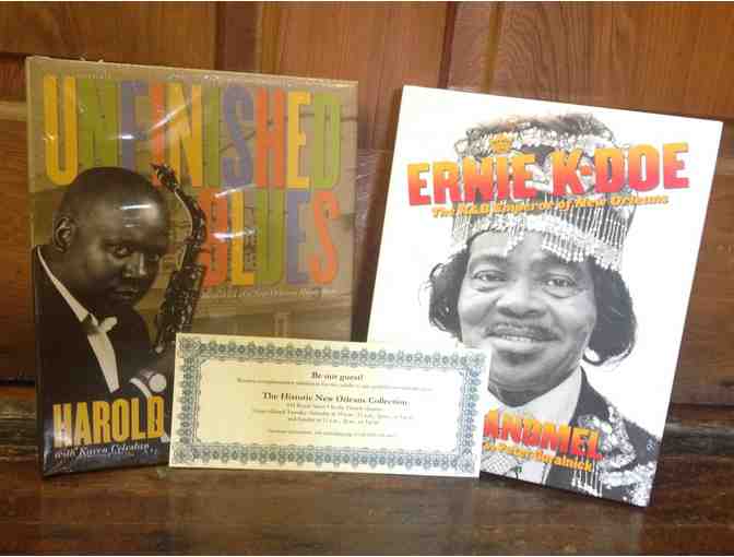 This educational and historically minded package includes a Heritage Club Membership to the Preservation Resource Center along with additional goodies and merchandise, a copy of Ernie K-Doe: The R&B Emperor of New Orleans biography, a copy of "Unfinished Blues: Memories of a New Orleans Music Man" that celebrates New Orleans composer, producer, arranger, educator and jazz ambassador Harold Battiste, Jr. from The Historic New Orleans Collection accompanied with a complimentary certificate of admission for two (2) adults to enjoy one of The Collection's guided tours: The Williams Residence Tour or Courtyards and Architecture Tour.