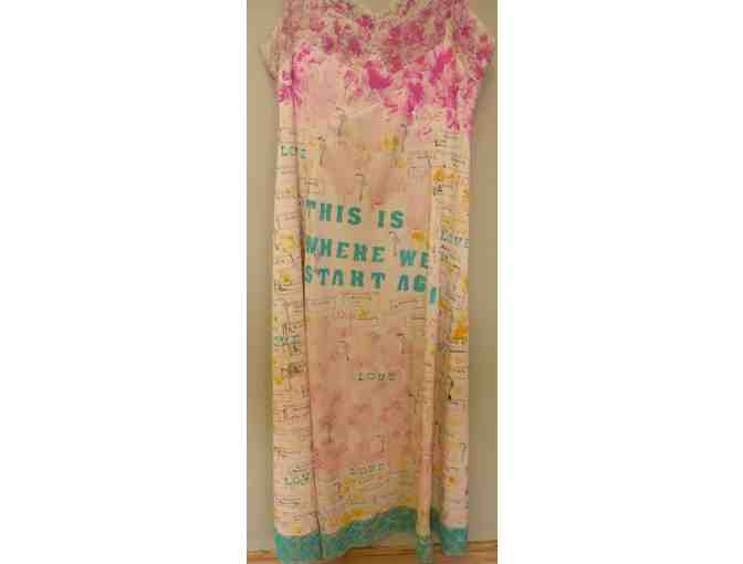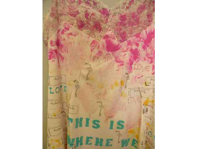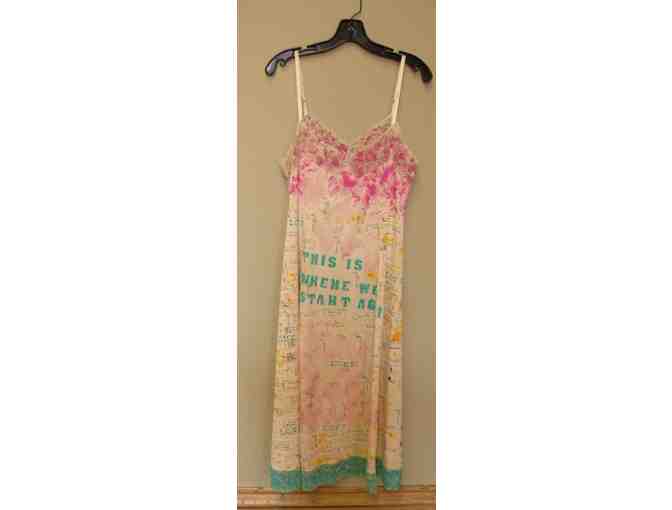 Add a unique, one-of-a-kind piece to your wardrobe with this handmade, mixed media, silk blend slip dress created by Lindsey Meyers.
