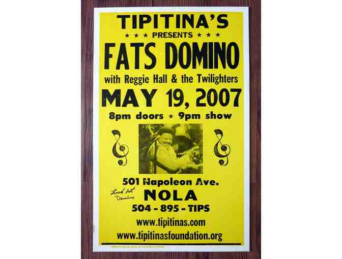 Tipitina's poster signed by the great Fats Domino from his last public performance, May 19, 2007. Condition: Excellent. Measures 14" x 22".