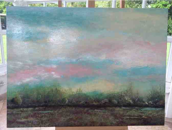 "Untitled" is an original acrylic, 24 ct. gold leaf painting by Mary von Kurnatowski depicting a contemporary landscape on gallery wrapped canvas. Piece measures 30" x 40" x 1.5" and is ready to hang.