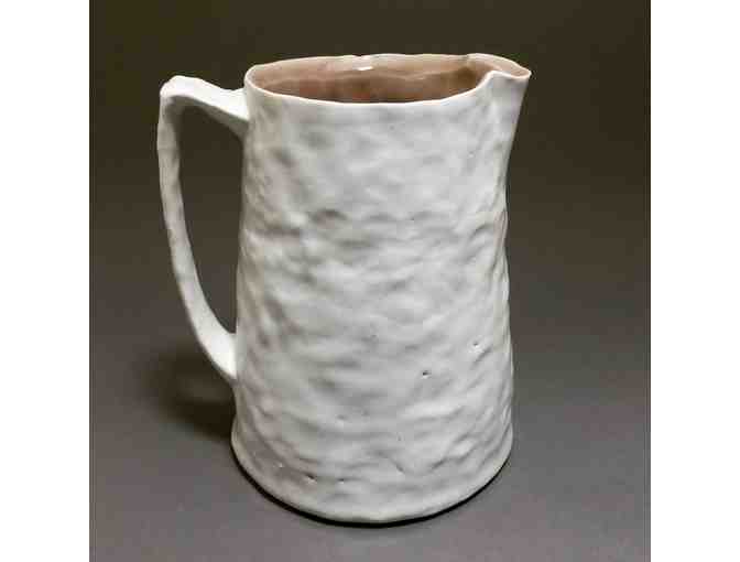 Ceramic Rose Pitcher, hand-built in porcelain by Roberta Massuch. Raw porcelain outside with rose glaze center.