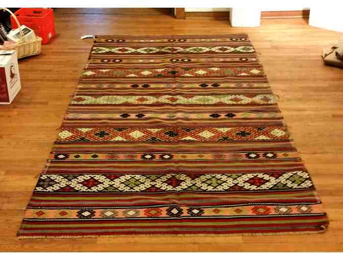 This gorgeous vintage Turkish Kilim rug features the Anatolian design. Vibrant color combinations that will liven up any room.