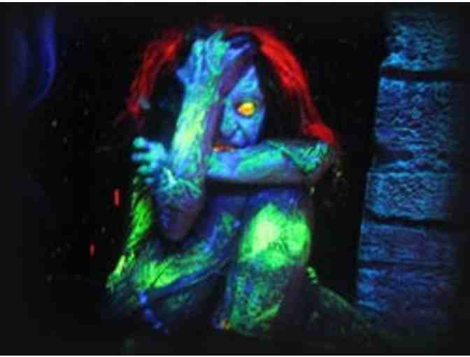 The six of you will be totally immersed in the state-of-the-art 3-D world of Salem’s best haunted house. The walls and floors are completely covered in 3-D effects brought to life with high tech 3-D glasses and black-lights. You will encounter actors and animatronics around every corner. It’s a frightfully fun feast for your eyes.
