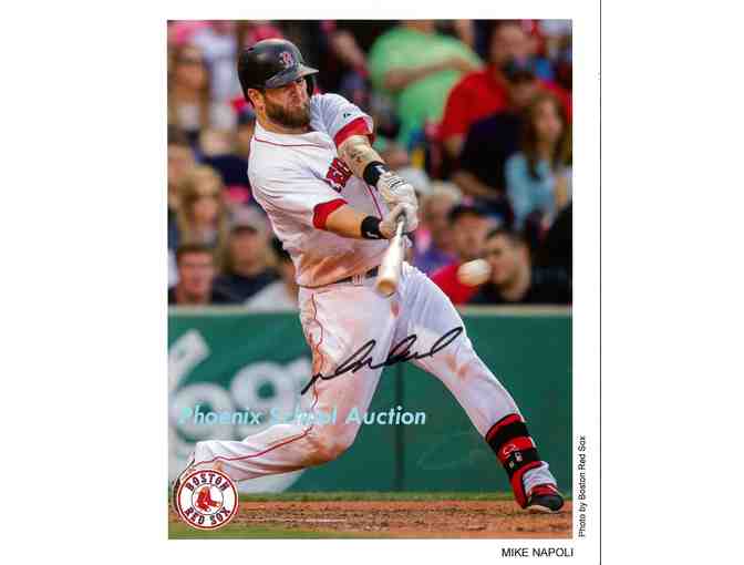 Mike Napoli Autographed Photo at bat showing the moment just before contact.