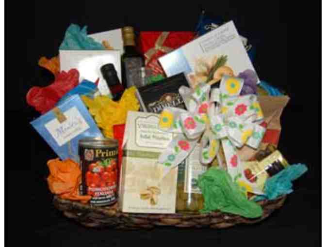 This beautiful gift basket is filled with great-tasting gourmet goodies for you to enjoy! Basket includes: Olive Oil, Imported Italian tomatoes, Whole pepper corns, Jelly, Amaretti Italian Cookies, Biscotti, Belgium Chocolates Squares and Assorted Pasta, Nuts, Bagel Chips, Imported peppers, Olives, Pasto Flavor Crackers, and Balsamic Vinegar.