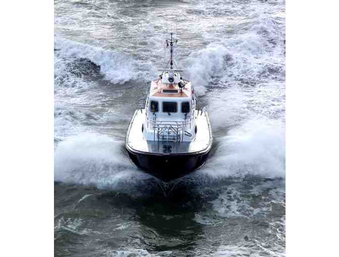 You can almost feel the spray of the water when viewing this remarkable photograph of the Dover Pilot Boat pulling away from a ship leaving for the North Sea and Scandinavia. The photo is mounted on 1/4" foamboard and measures 27" x 24". The photo was taken by NH photographer and former State Senator Peter Hoe Burling