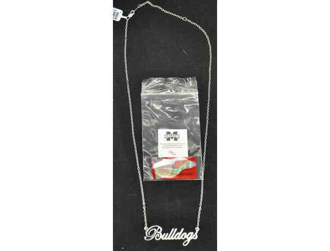 You know you love bulldogs, now let the whole world know with this beautiful silver bulldog necklace. How do you spell love - BULLDOG!!