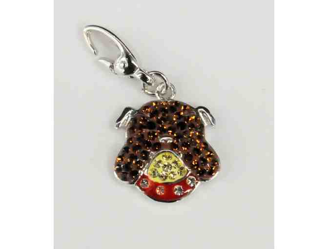 Is it a zipper pull. Is it a wine glass charm. You decide. This beautiful and versitile crystal bulldog charm can be used in so many different ways.