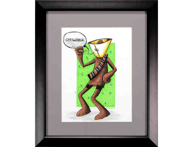 Description: Chewbacca from STAR WARS expresses his frustration with the cone of shame.