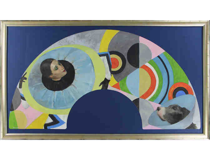 Description: Helen composed a scene of French artist Sonia Delaunay dancing against a painted background.