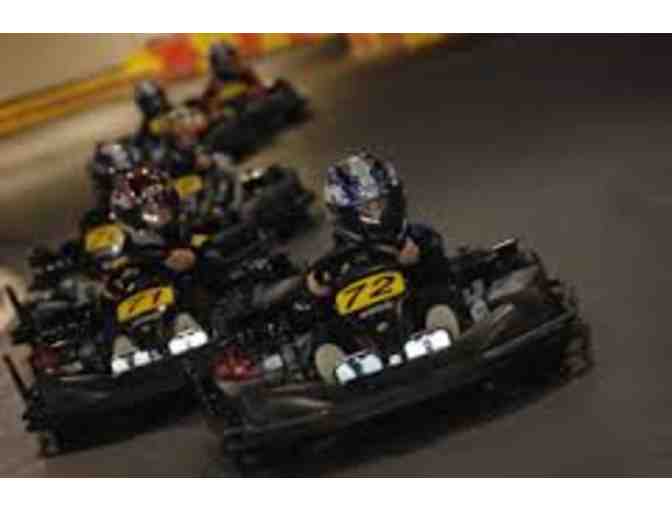 Complete racing package for two persons. Includes 15 laps on the country or city track, use of racing helmet, professional racing uniform with neck brace and balaclava, driver's license good for that day, driver strategy briefing, kart safety briefing, race participants' debriefing and computer printout of your performance to 1/100 sec!