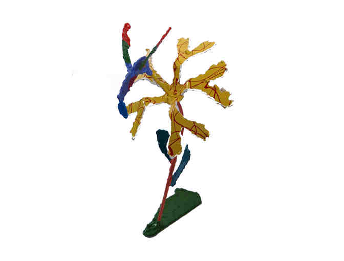 Adorn your garden or home with this vibrant, handmade metal sculpture by artist Brian Mace. Mace's whimsical garden sculptures & creatures are created from pieces of recycled scrap metal then painted in bright colors of exterior paint to brighten up your landscape or patio!