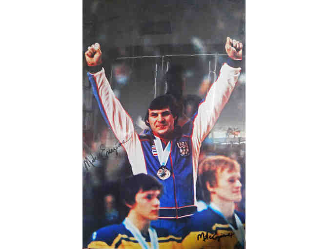 An autographed poster of 1980 U.S.A. Miracle on Ice player Mike Eruzione is a great collector's item.