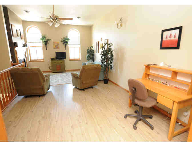 Plan your next southwestern Wisconsin getaway with this one night stay in the Driftless Angler apartment in downtown Viroqua, above the Driftless Angler fly shop! This bright, welcoming apartment has 2 bedrooms (3 beds), a full kitchen, front room with satellite TV, WiFi, bath, laundry facilities, and a back deck with a grill. For the fly anglers, there’s also a fly tying bench.