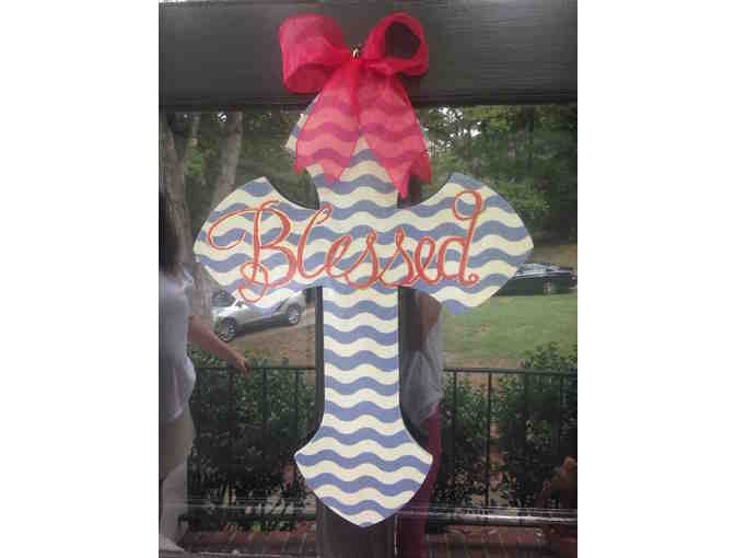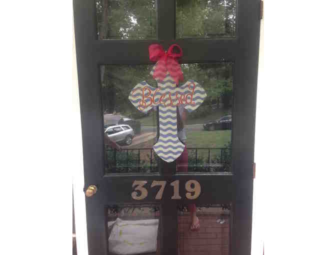 Hang some spirit on your front door with this hand-painted wood door hanger, designed and painted by Holy Trinity parent, Arden Brewer.