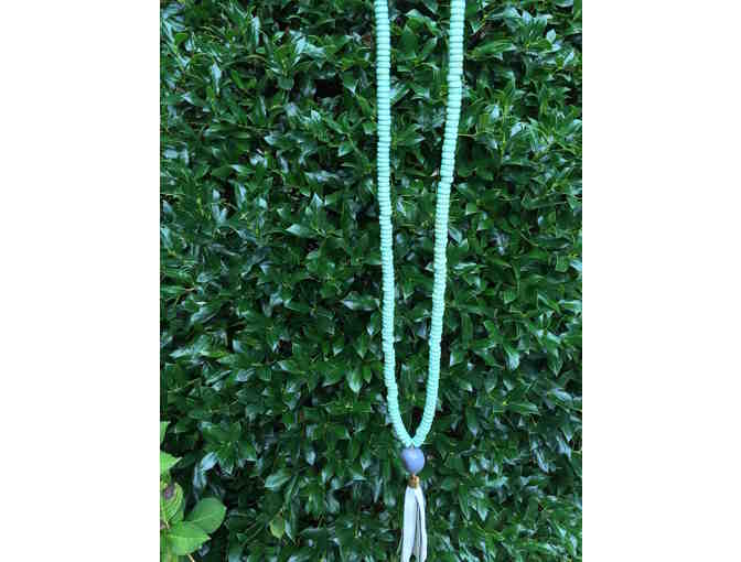 Tassels are a “must-have” this year! Natural sage wood beads with a white leather tassel and a fab slate agate stone - this necklace is perfect for your fall wardrobe. Light as a feather and oh-so-fashionable! Erin McDermott has been designing her custom jewelry in her Myers Park studio for several years. Erin McDermott’s jewelry has been featured in fabulous fashion magazines including Real Simple Magazine, Martha Stewart Weddings and more. She lives right in our backyard and is on her way to celeb ranks! Erin’s gem business was born when she took jewelry design classes and fell in love with the process of creating jewelry. She uses semi-precious stones, sterling silver, organic forms, textures, glass, freshwater pearls, wood, and unique materials to create her amazing jewelry. These materials help Erin create jewelry, which is classic but also modern and unique.