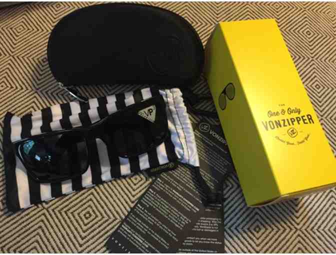 You'll also receive VonZipper Elmore sunglasses - handmade in Italy; the frame is crafted from nylon grilamid and held together with stainless steel optical hinges. The base 6 spherical impact resistant polycarbonate lenses will protect your eyes with 100% UV protection. Sunglass case - Shade your shades with the VonZipper hard neoprene sunglasses case. This case will keep one pair of sunnies safe and secure with a zippered closer and carabiner clip for those rough nights.