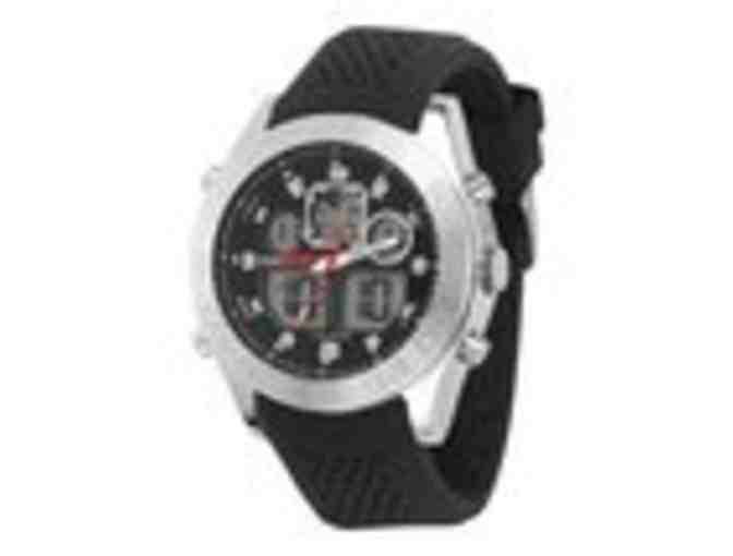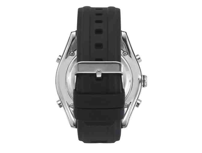 Wrap technology to your wrist! The Fifty50 offers the functionality of a digital watch with classic analog time telling. A streamlined Stainless steel case and custom tooled silicone band complete the design for this precision time keeping machine.
