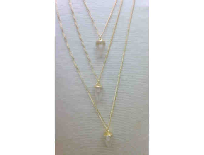 Layered goldtone necklace with opaque crystal-like stone charms.