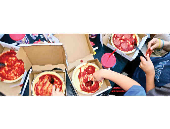 4 Lucky kids get to decorate their own Fresh Brother's pizza box. Then the really fun part! They make their own kid-size pizza any way they want to. Off into the oven the pizzas go; and when they're ready, we bring them out in the boxes they decorated themselves.