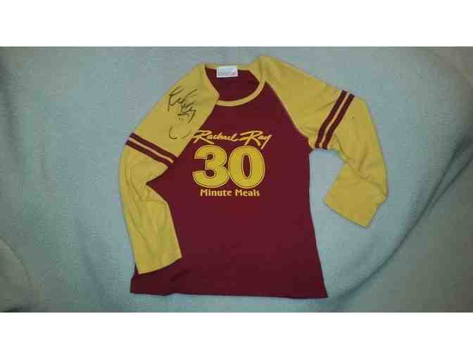 Own this autographed rugby red and yellow baseball cooking tee signed by Rachel Ray!
