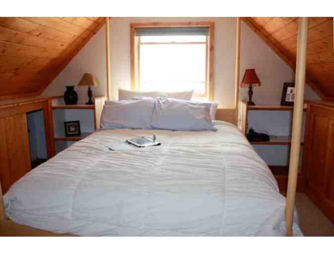 - The smaller bedroom has a full bed and shelving and a view of the backside of the house. The bedrooms are accessed from a narrow steep staircase.