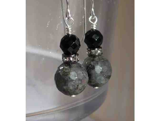 Made with rich dark grey toned labradorite and genuine onyx. Sterling silver is used throughout. Labradorite is 10 mm and onyx is 6 mm in diameter.