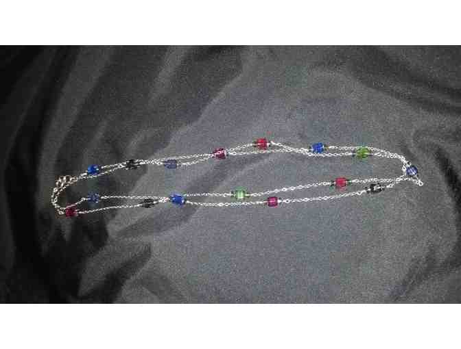 Swarovski Crystal Multi colored Square Bead with Sterling Silver Necklace